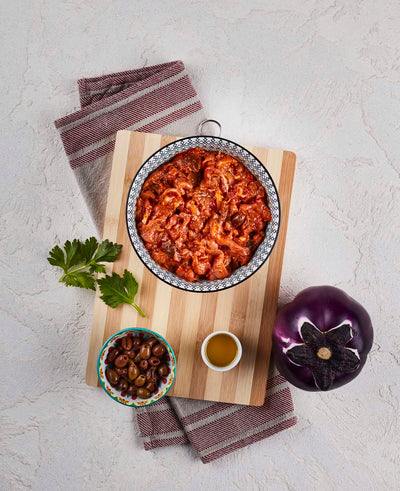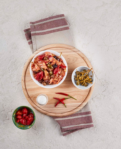 Straccetti di pollo, pomodorini confit e olive taggiasche